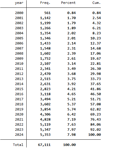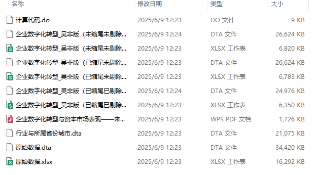 - 文件格式:Dta格式(使用Stata打开)、Xlsx格式(使用Excel打开)