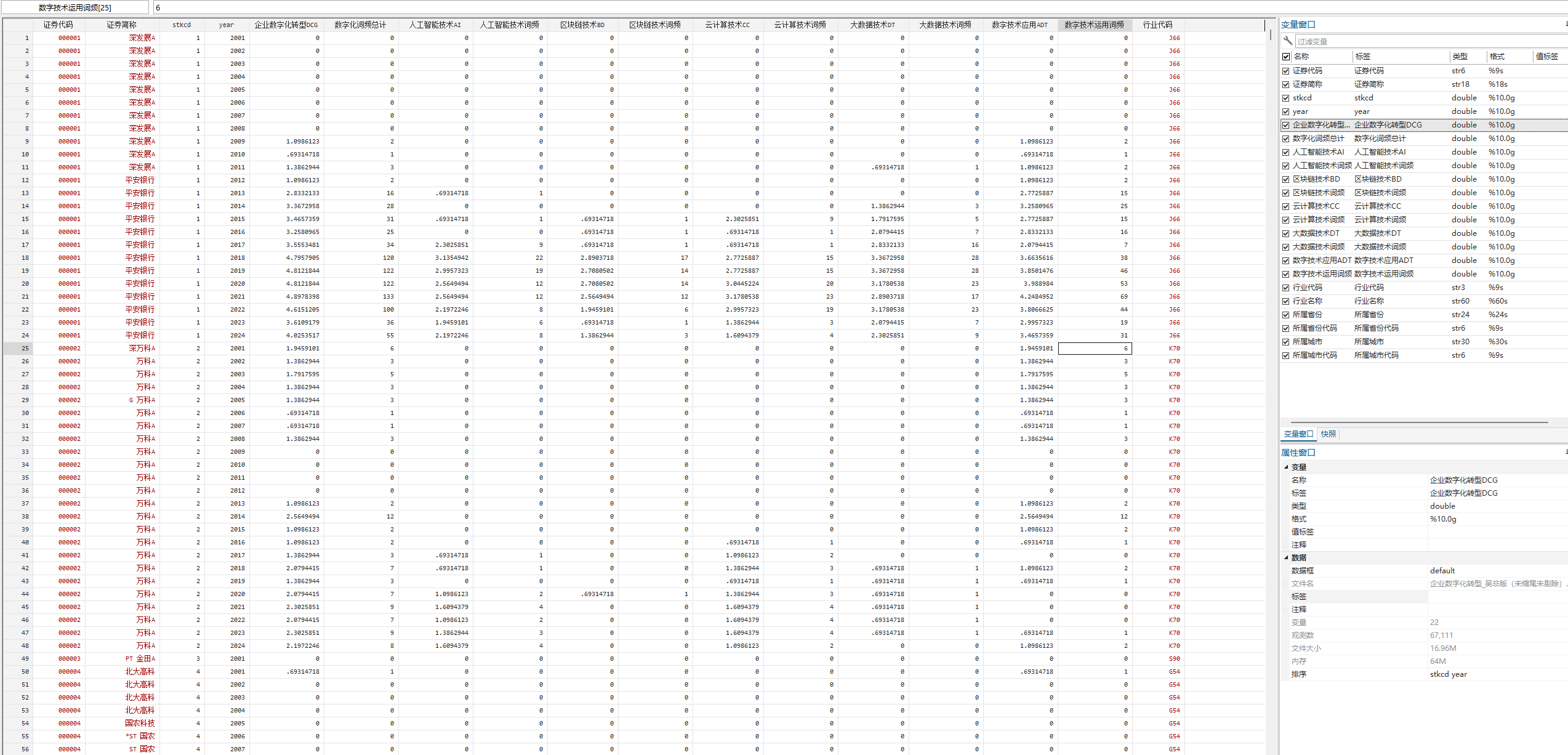 处理说明:本资料所使用的词频原始数据为使用Python对上市公司年报进行文本分析后获得(jieba分词,停用词表使用哈工大停用词表),后续使用Stata进行整理,最终形成面板数据形