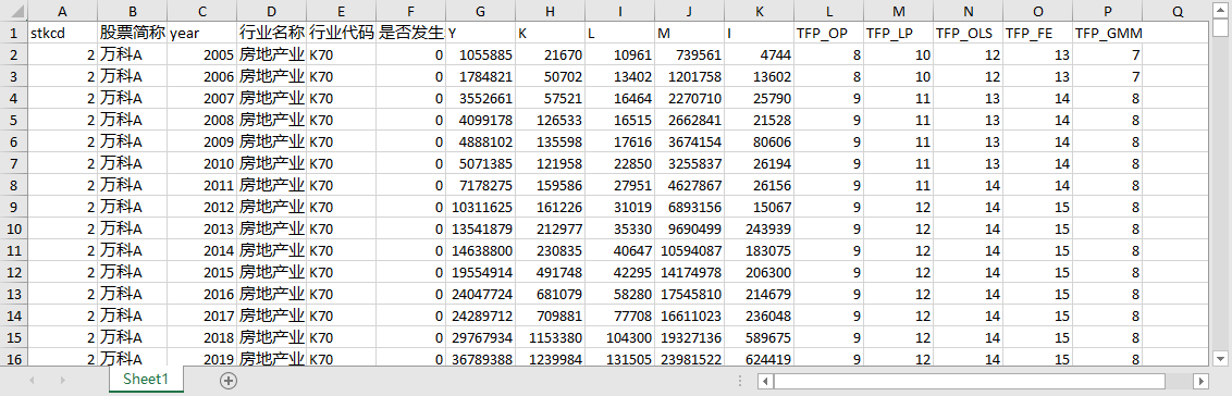 最新2024上市公司全要素生产率(原始数据+5种方法测算)|||