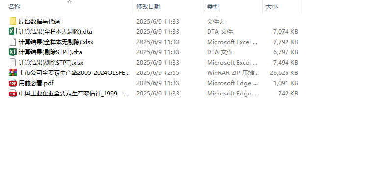 数据测算:包含OLS、FE、LP、OP、GMM五种TFP测算方法