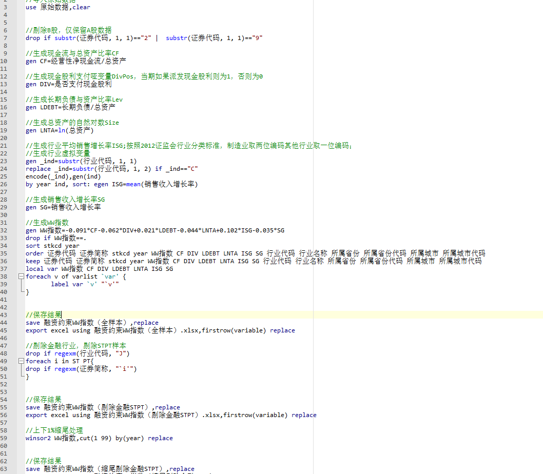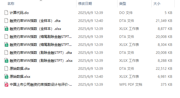 - 三个版本:融资约束WW指数(未剔除未缩尾)、融资约束WW指数(已剔除金融STPT未缩尾)、融资约束WW指数(已剔除金融STPT已缩尾)