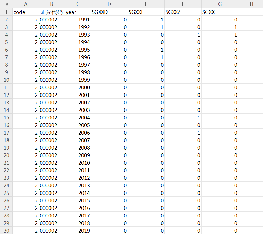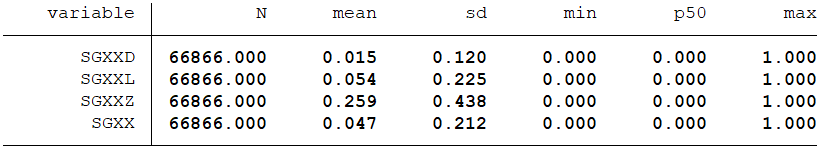 “双高现象”(SGXXD/SGXXL/SGXXZ/SGXX)变量为虚拟变量,若该上市公司发生“双高现象”,则该变量取值为1,否则为0。