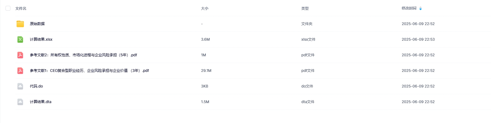 三、包含内容:含原始数据、代码do文件、参考文献、计算结果。