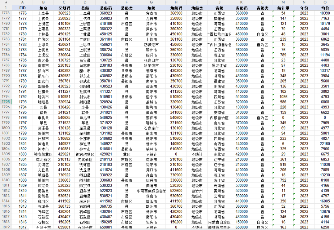 [color=rgba(0, 0, 0, 0.9)]GIS数据|2023全国区县级平均房价数据