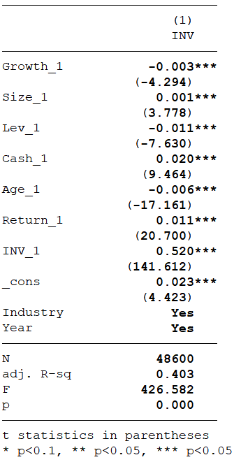 上述列示的Richardson投资效率模型选取的变量和变量度量方式均是现有文献中最常用的,可以直接使用此模型。
