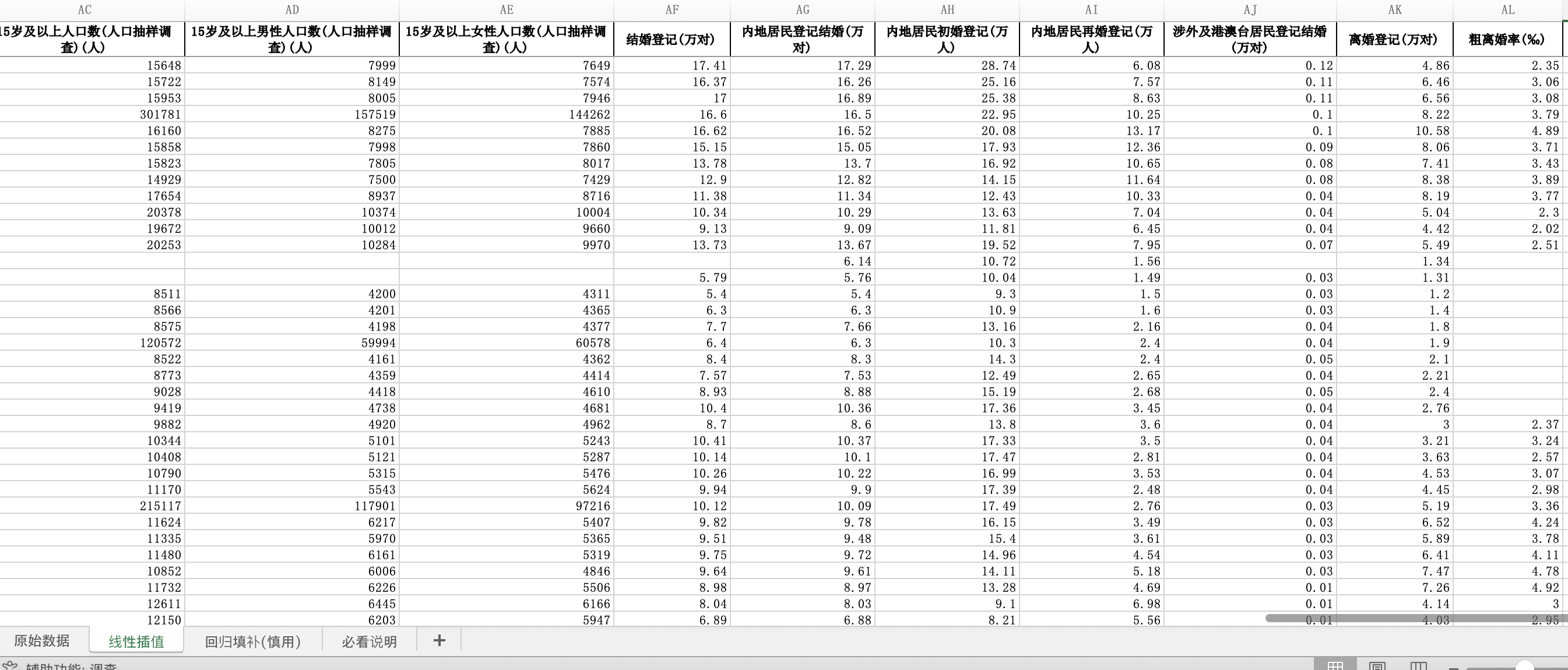 人口死亡率15岁及以上人口数 | 15岁及以上男性人口数 | 15岁及以上女性人口数 |