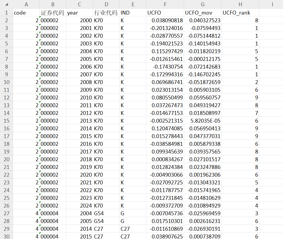 计算出公司年度的现金流操控程度后,为了控制现金流操控可能在时间序列上出现的异常波动性, 我们采用前三年的移动加权平均数(UCFO_mov)度量公司年度的现金流操控程度。该数值越大,说明现金流操控程度越高,上市公司的现金流信息越不透明。