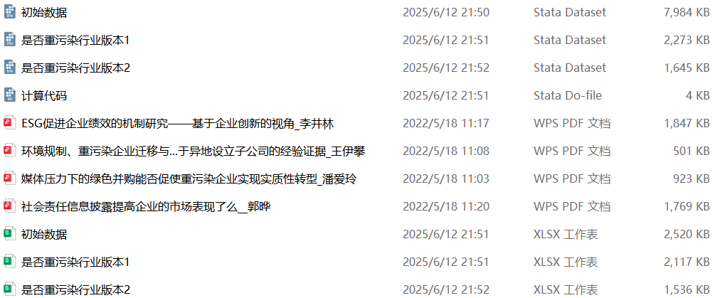 关于重污染行业的定义,现有的大多数文献没有进行明确说明。即使在明确定义了重污染行业的少部分文章中,也没有一致的分类标准,都有部分差别。本人在现有的对重污染行业具有明确定义的文章中选取了三种定义方法,整理了“是否重污染行业”变量,供大家使用,使用时注明参考文献即可。