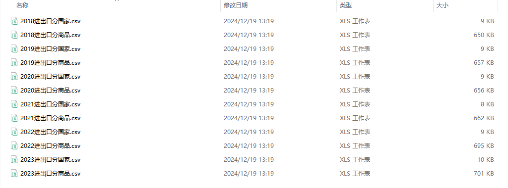 一、2018-2023年中国海关按贸易伙伴国家分类的数据