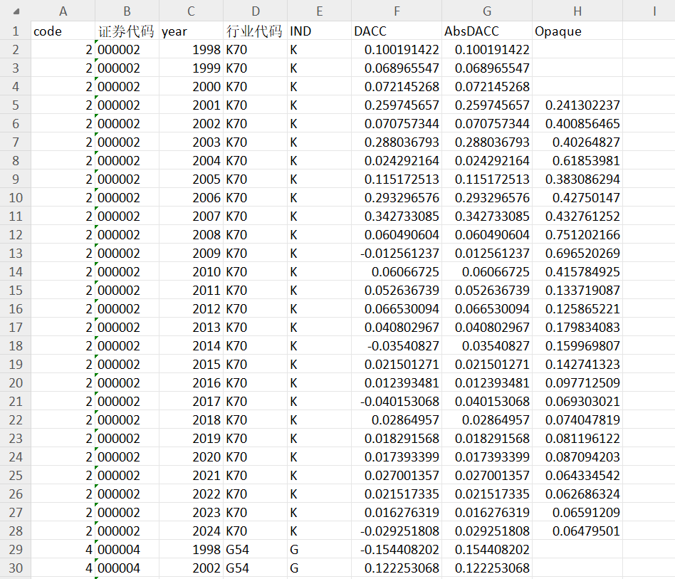 以下仅以 1.1.2应计盈余管理(修正的琼斯模型Dechow等,回归残差项) 为例