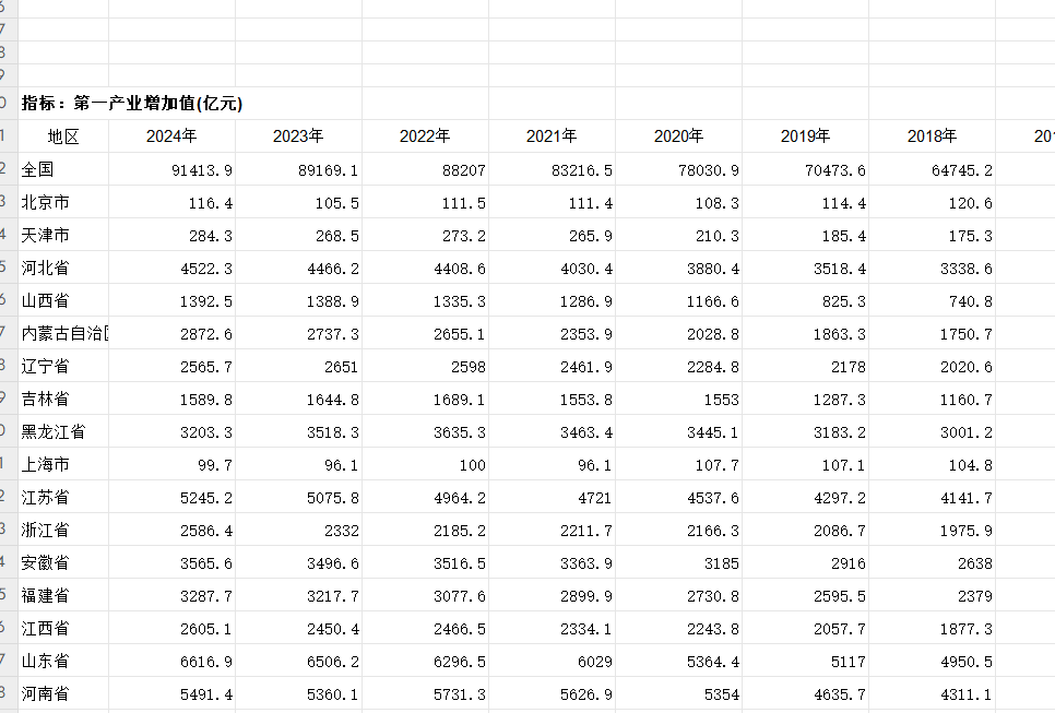 1992-2024年全国及各省地区生产总值、第一产业增加值、第二产业增加值、第三产业增加值数据(无缺失)