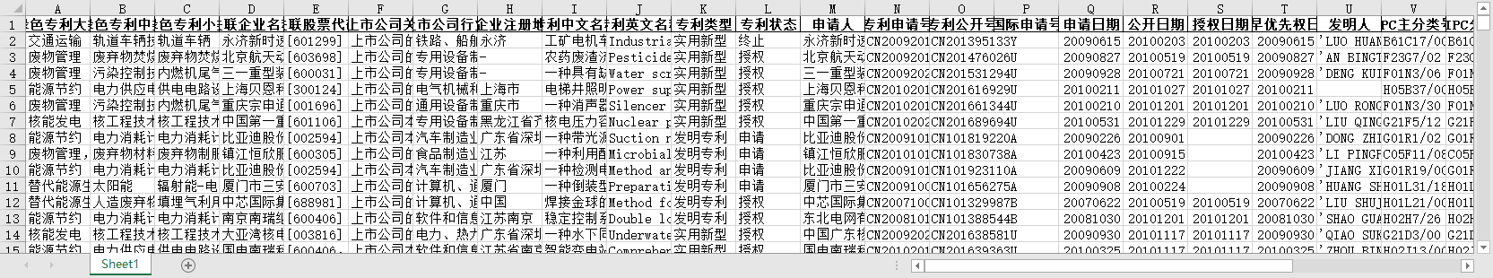 [钉子][闪亮]根据最新WIPO的绿色专利清单,筛选企业绿色专利,包括上市公司本身、子公司、联营、合营公司。数据更新至2025.2,整理绿色专利数据83.7万条,包括与上市公司关系、绿色类别等字段
