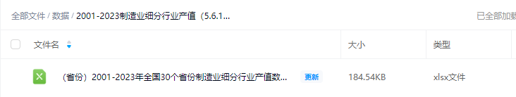 注:1.主页也有2011—2023制造业分行业资产总额/固定资产投资/营业收入,欢迎采用!