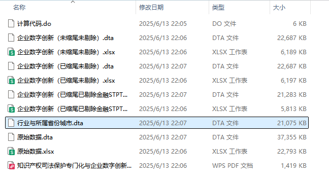 - 三个版本:企业数字创新(未缩尾未剔除)、企业数字创新(未缩尾未剔除)、企业数字创新(已缩尾已剔除金融STPT)