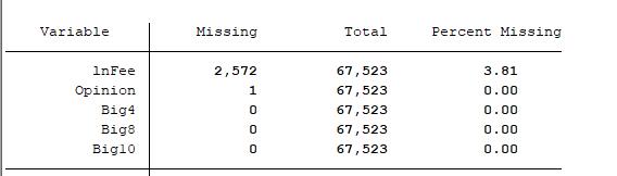 lnFee、Opinion、Big4、Big8、Big10数据缺失值情况: