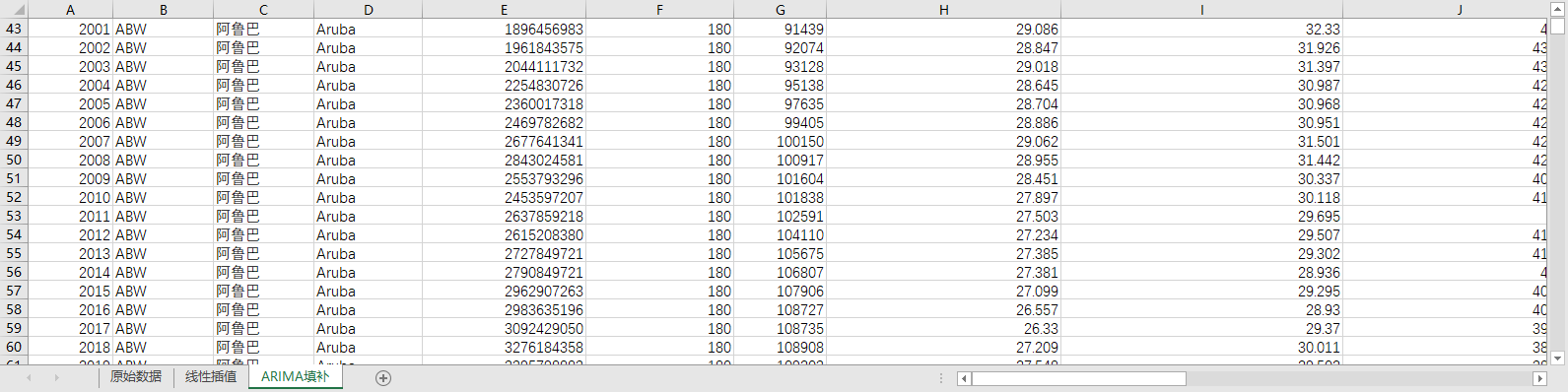 回归填补ARIMA填补。基于ARIMA模型,利用同一地区的时间序列数据,对缺失值进行预测填补。