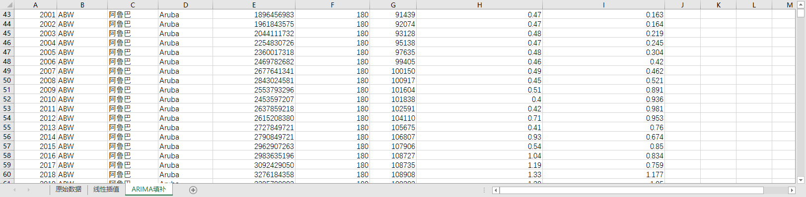 回归填补ARIMA填补。基于ARIMA模型,利用同一地区的时间序列数据,对缺失值进行预测填补。