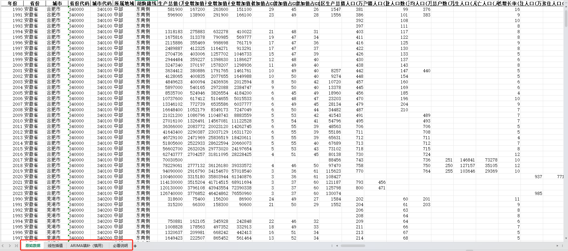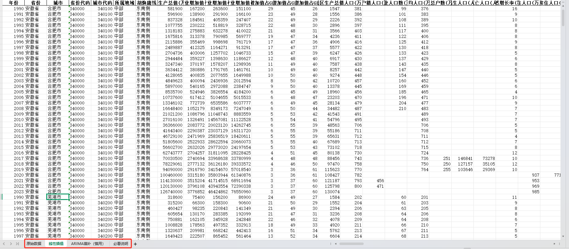 1991-2024安徽省合肥芜湖蚌埠淮南等地级市214指标人口资源环境经济财政科技人民生活公.xlsx