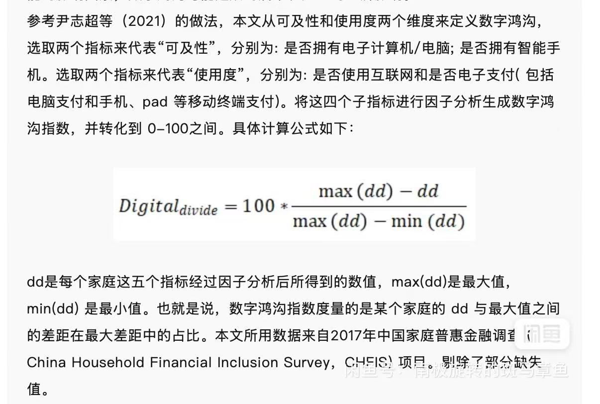 随着互联网、智能手机、电子支付等数字技术的迅速发展,数字鸿沟问题愈加突显,了解并测量数字鸿沟的存在,可帮助研究者了解其对社会公平性、经济发展和公共服务的影响。数字鸿沟指数是用于衡量社会各个群体在数字技术获取、使用等方面差异的指标体系,本次分享数字鸿沟指数是根据CHFS数据计算出的结果