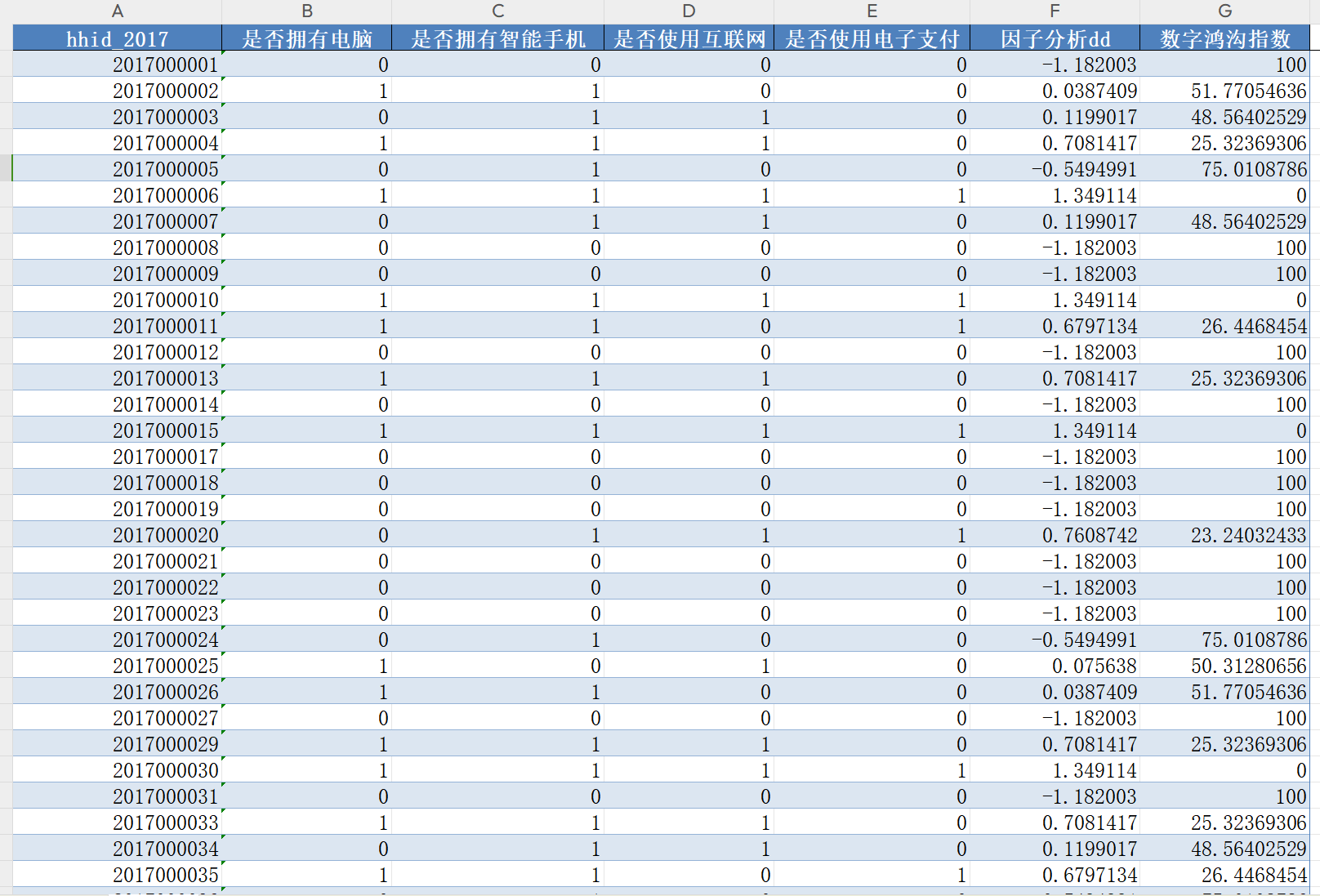 一、数字鸿沟指数数据的介绍数据年份:2017年