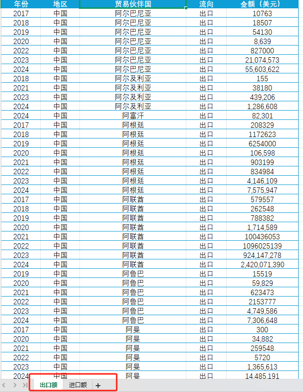 全面涵盖2017至2024年间,中国与全球各贸易伙伴国之间的新能源汽车进出口活动