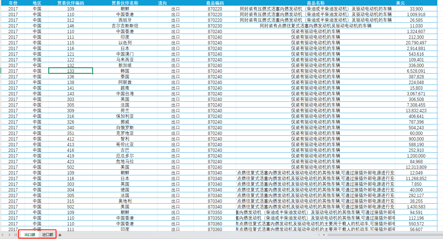 2017-2024年中国与世界各国新能源汽车进口额出口额面板数据(含细分种类)