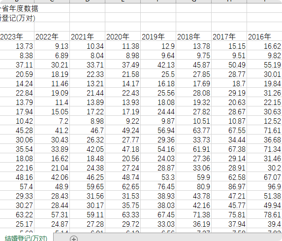 全国各省结婚、离婚、粗离婚率数据2010-2023.zip
