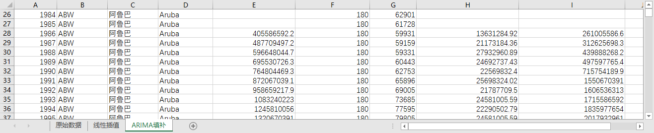 回归填补ARIMA填补。基于ARIMA模型,利用同一地区的时间序列数据,对缺失值进行预测填补。