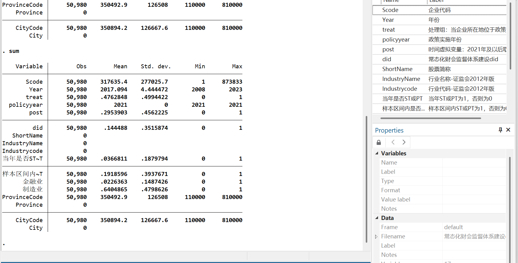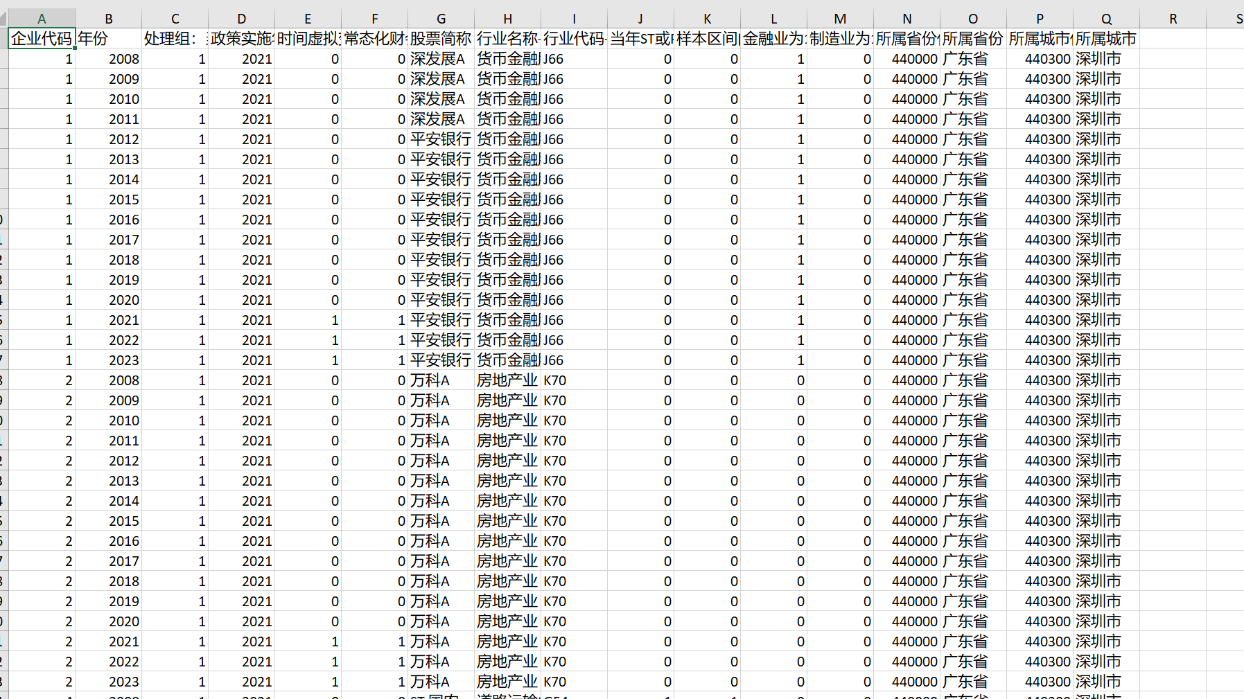 以后年份取1,否则取0;treat为处理组变量,当地级市为政策试点区域