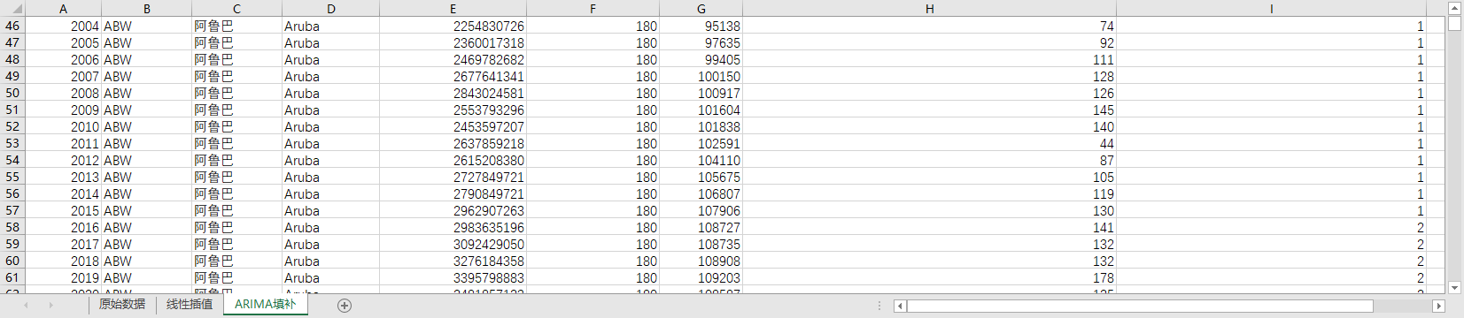 回归填补ARIMA填补。基于ARIMA模型,利用同一地区的时间序列数据,对缺失值进行预测填补。