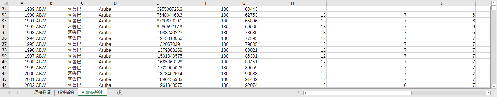 回归填补ARIMA填补。基于ARIMA模型,利用同一地区的时间序列数据,对缺失值进行预测填补。