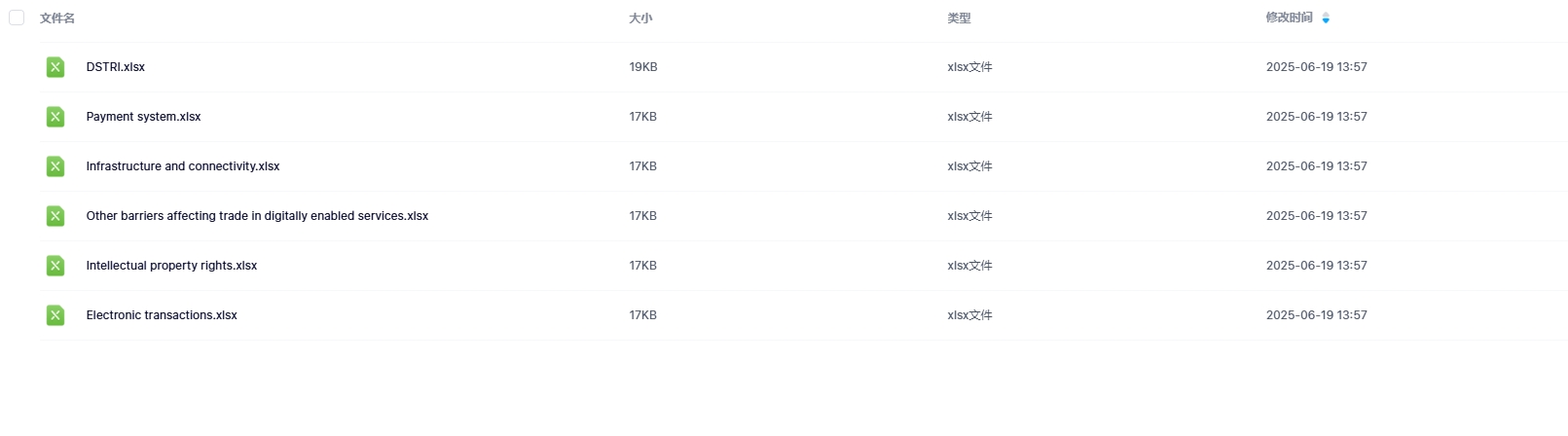 包含指标:电子交易、知识产权、电子支付系统、其他影响数字化服务贸易的障碍、基础设施和连接性、数字服务贸易限制指数