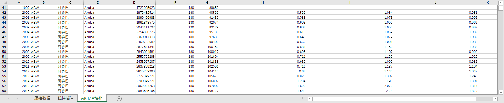 回归填补ARIMA填补。基于ARIMA模型,利用同一地区的时间序列数据,对缺失值进行预测填补。
