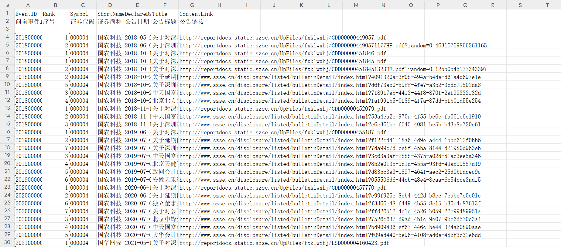 Rank [序号] - 1,2,3,4…表示此次事件共有多少个来回公告