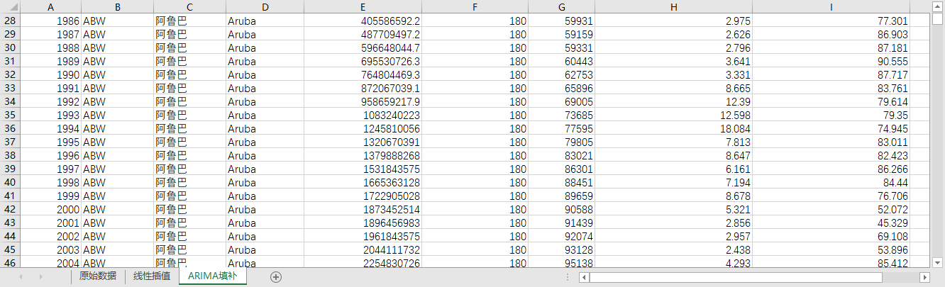 回归填补ARIMA填补。基于ARIMA模型,利用同一地区的时间序列数据,对缺失值进行预测填补。