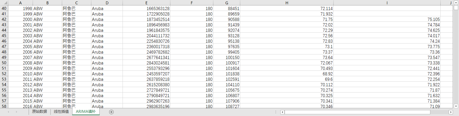 回归填补ARIMA填补。基于ARIMA模型,利用同一地区的时间序列数据,对缺失值进行预测填补。