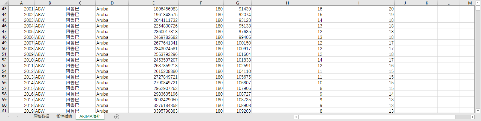 回归填补ARIMA填补。基于ARIMA模型,利用同一地区的时间序列数据,对缺失值进行预测填补。
