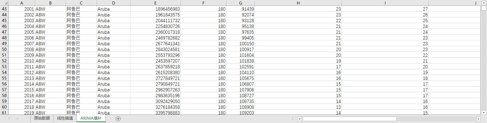 回归填补ARIMA填补。基于ARIMA模型,利用同一地区的时间序列数据,对缺失值进行预测填补。