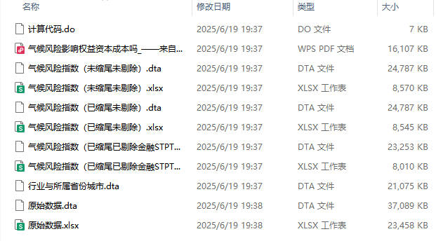 - 三个版本:气候风险指数(未缩尾未剔除)、气候风险指数(已缩尾未剔除)、气候风险指数(已缩尾已剔除金融STPT)