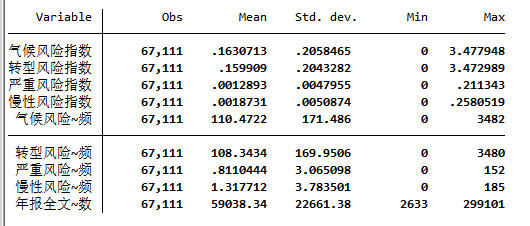 气候风险总词频=转型风险关键词词频+严重风险关键词词频+慢性风险关键词词频。