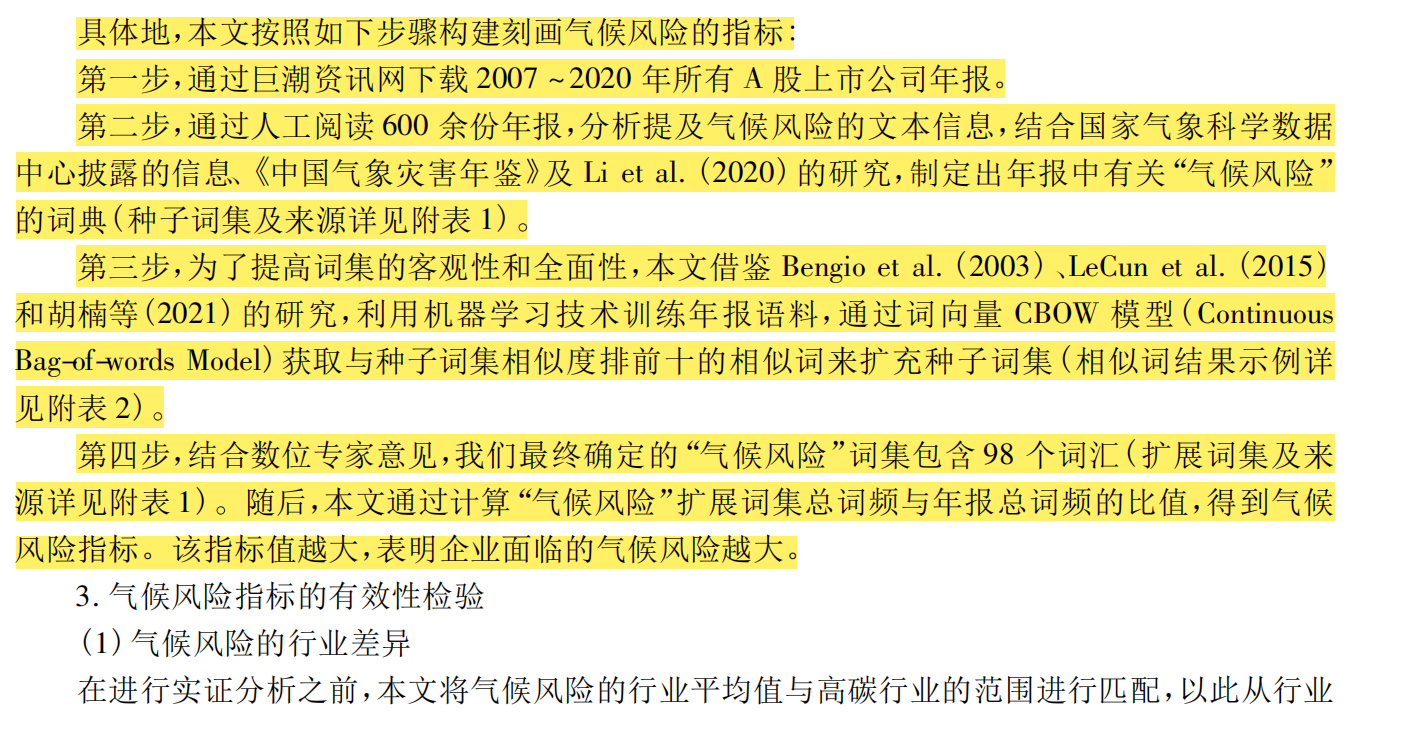 第二步,参考文献制定出年报中有关“气候风险”的词典(共计98个关键词)。