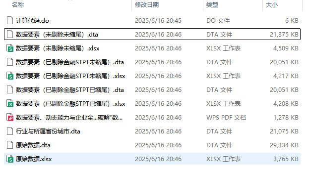 - 文件格式:Dta格式(使用Stata打开)、Xlsx格式(使用Excel打开)