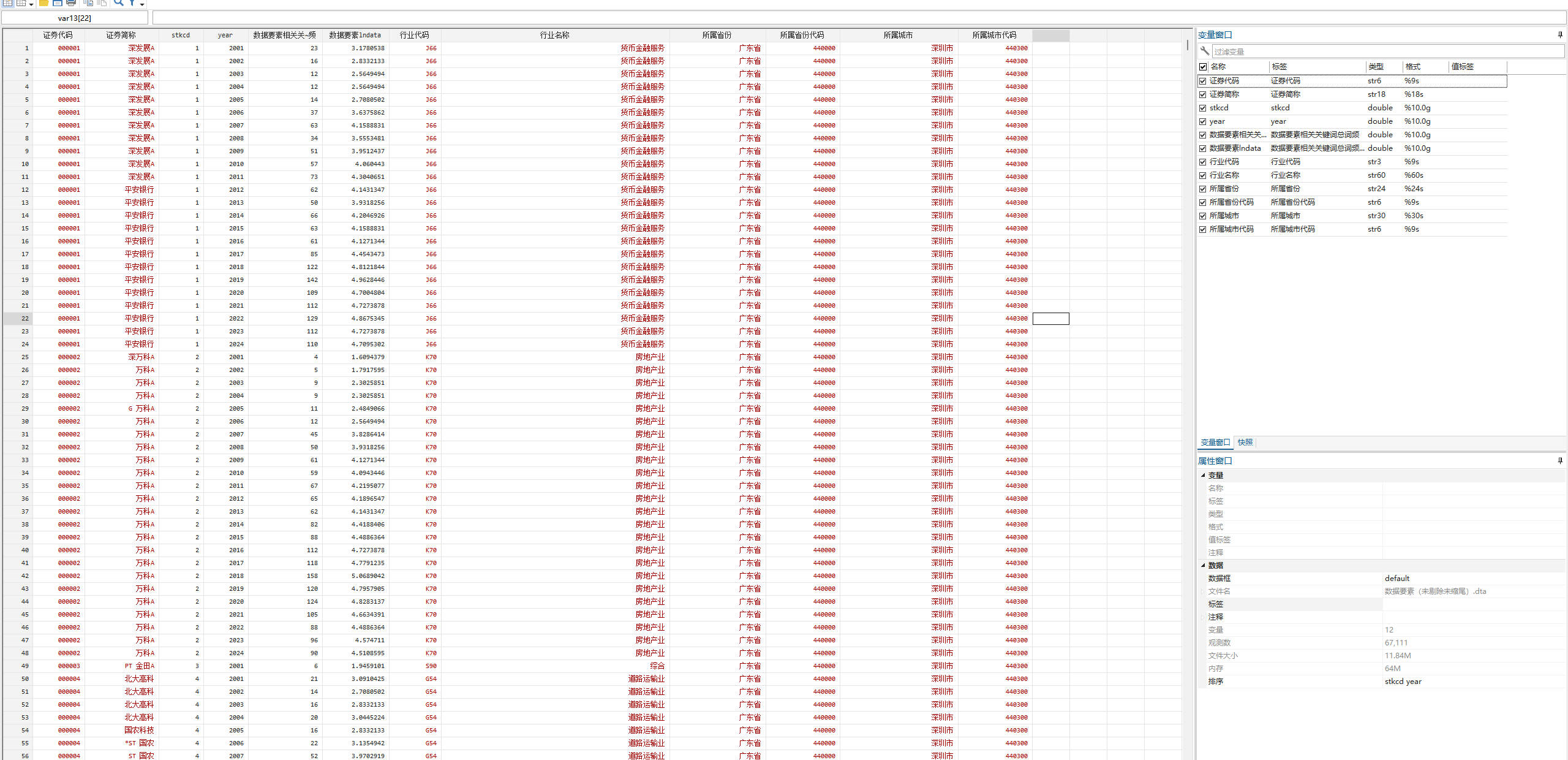 处理说明:本资料所使用的词频原始数据为使用Python对上市公司年报进行文本分析后获得(jieba分词,停用词表使用哈工大停用词表),后续使用Stata进行整理,最终形成面板数据形式