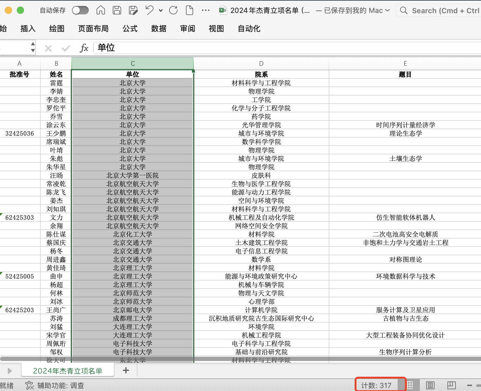 数据范围:国家杰出青年科学基金(杰青)获批人员