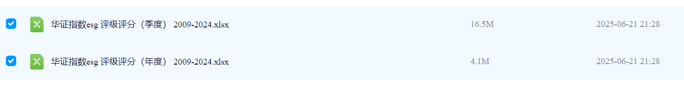 华证ESG评级评分数据集 (2009-2024年)本数据集为研究中国A股上市公司ESG表现提供了宝贵且详实的基础资料。数据覆盖时间跨度长达十五年(2009年至2024年12月31日),完整记录了样本企业ESG表现的动态轨迹。数据以两种频率呈现: