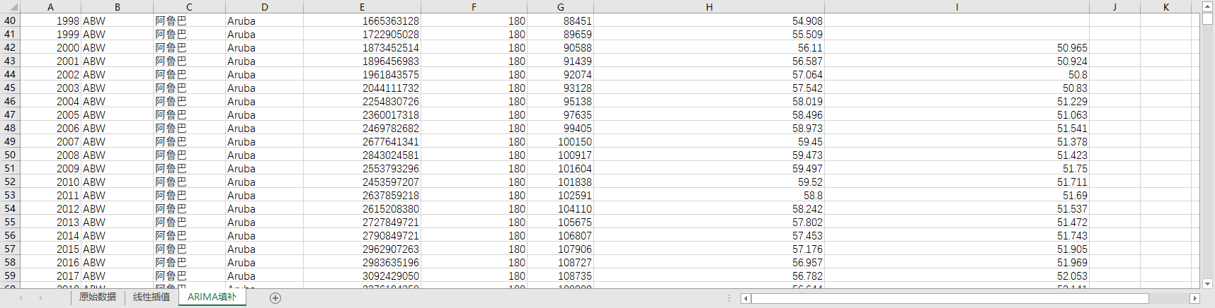 excel数据文件包原始数据(由于多年度指标不同存在缺失值)、线性插值、回归填补ARIMA填补三个版本,提供您参考使用。