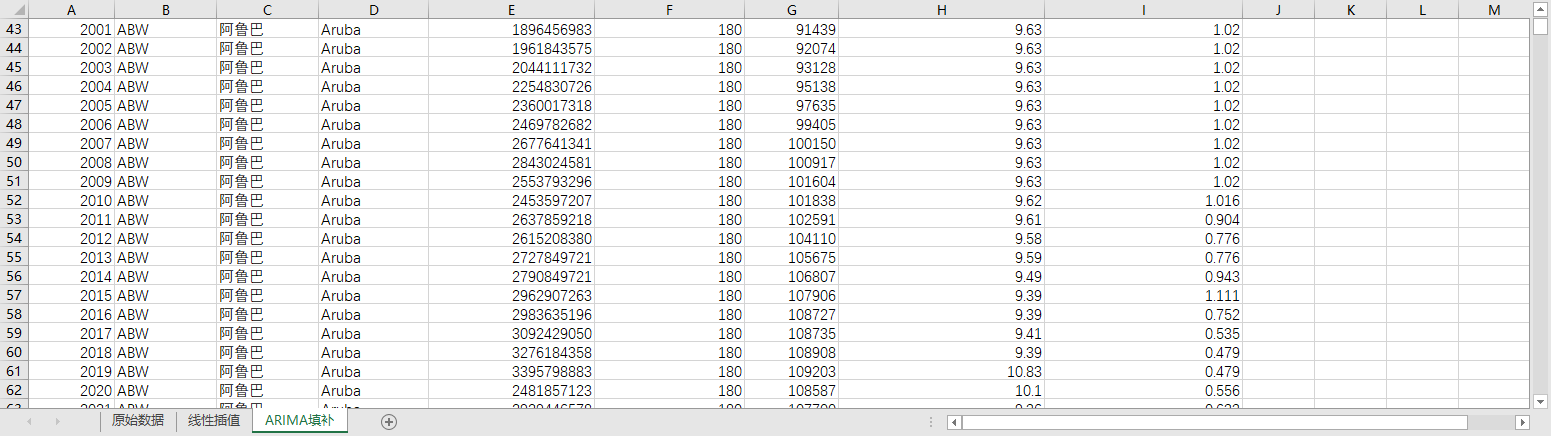 回归填补ARIMA填补。基于ARIMA模型,利用同一地区的时间序列数据,对缺失值进行预测填补。