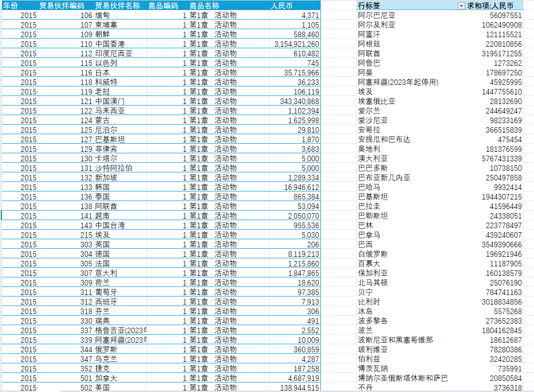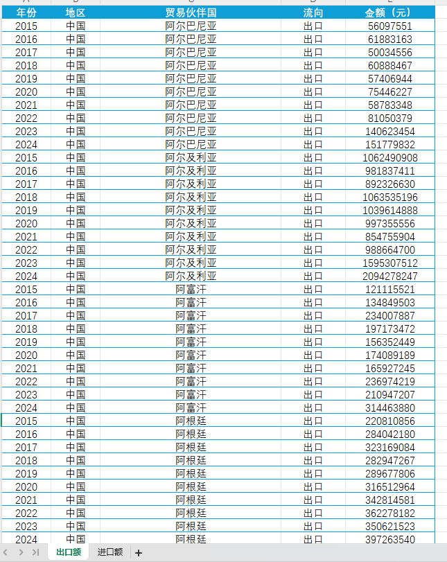 2015-2024年中国对世界各国农产品进口出口进出口面板数据(HS1~24章农场品)