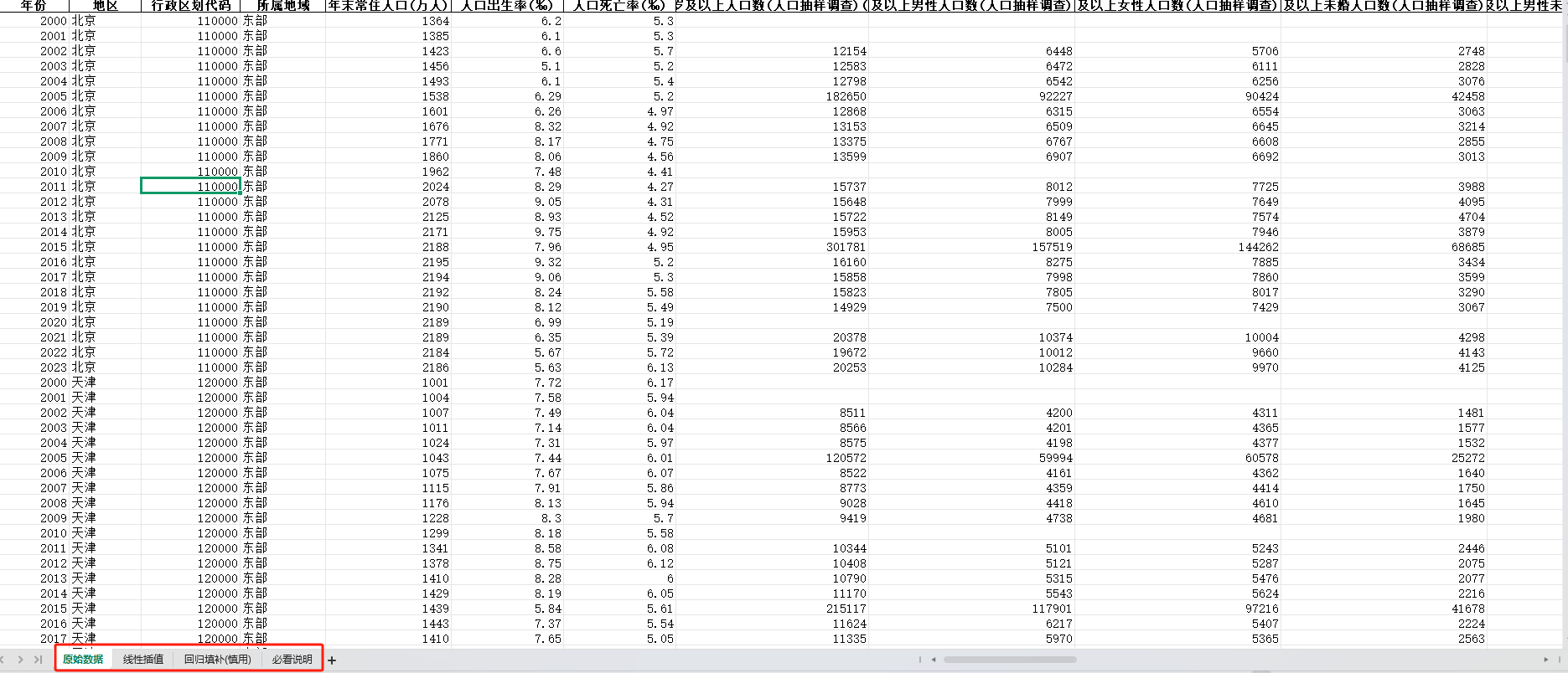 3、数据范围:全国31省(原始数据、线性插值、ARIMA填补三个版本)