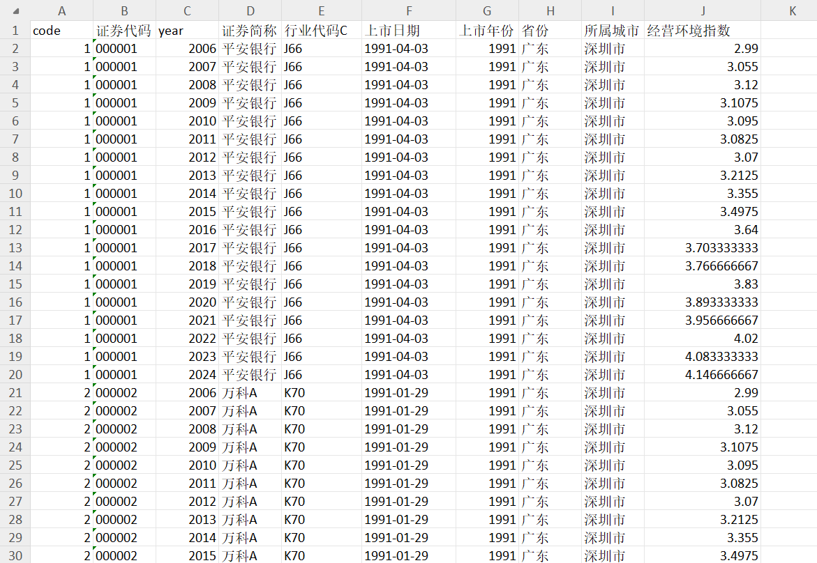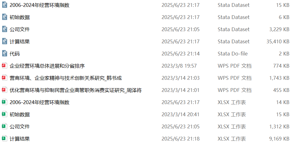 :将“2006-2024年经营环境指数”和“公司资料”(上市公司注册地所在省份)进行匹配之后的数据,方便大家直接使用